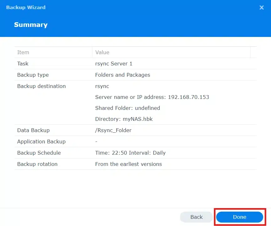 In this example, I will be using Synology NAS as the source and a linux server that runs Rsync and the destination Rsync server