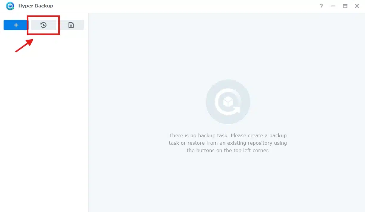 Open the Hyper Backup application on the new NAS, and click on restore Icon: