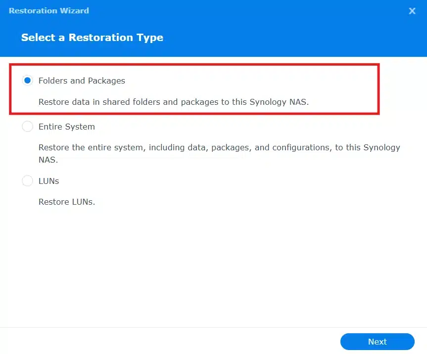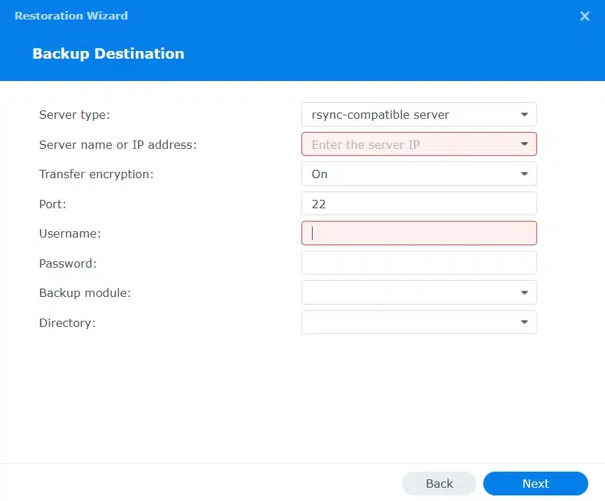 If you have a backup job already on an Rsync server, and you want to restore it to a new Synology NAS, or if you whipped your NAS and you want to restore the file from server, you can do that with Hyper Backup.