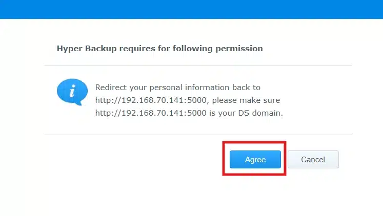 Grant permissions to Synology Hyper Backup: